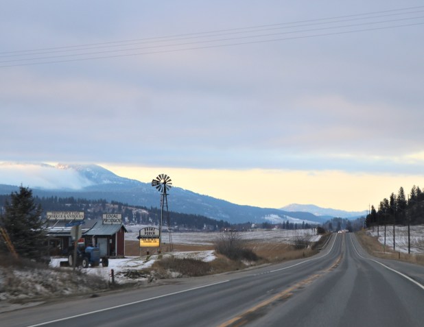 When we come down our road to town we have the choice to go south to Colville or north to Kettle Falls.