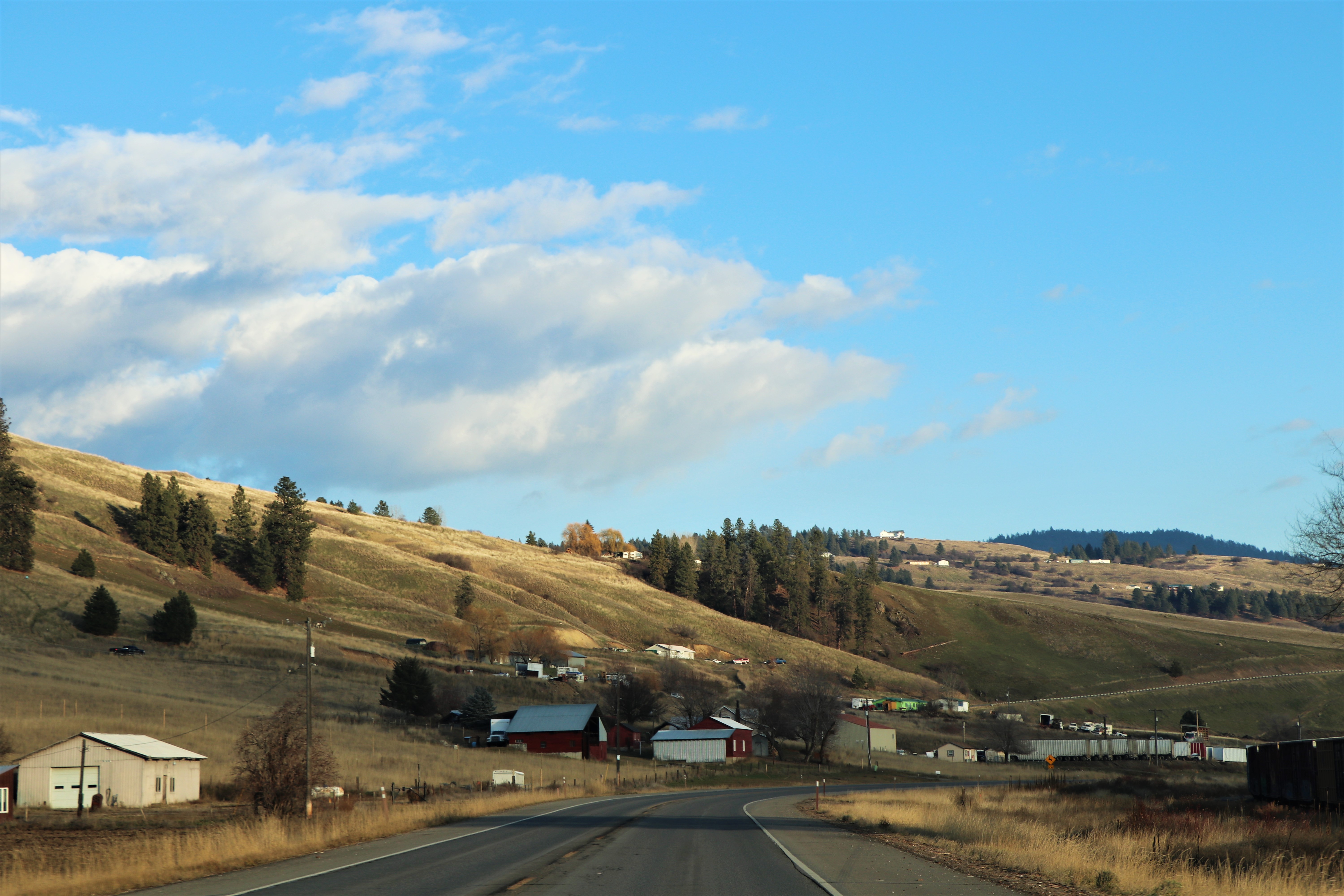 Highway 395 coming north into Colville with one of our local farm/produce shops, Front Porch.