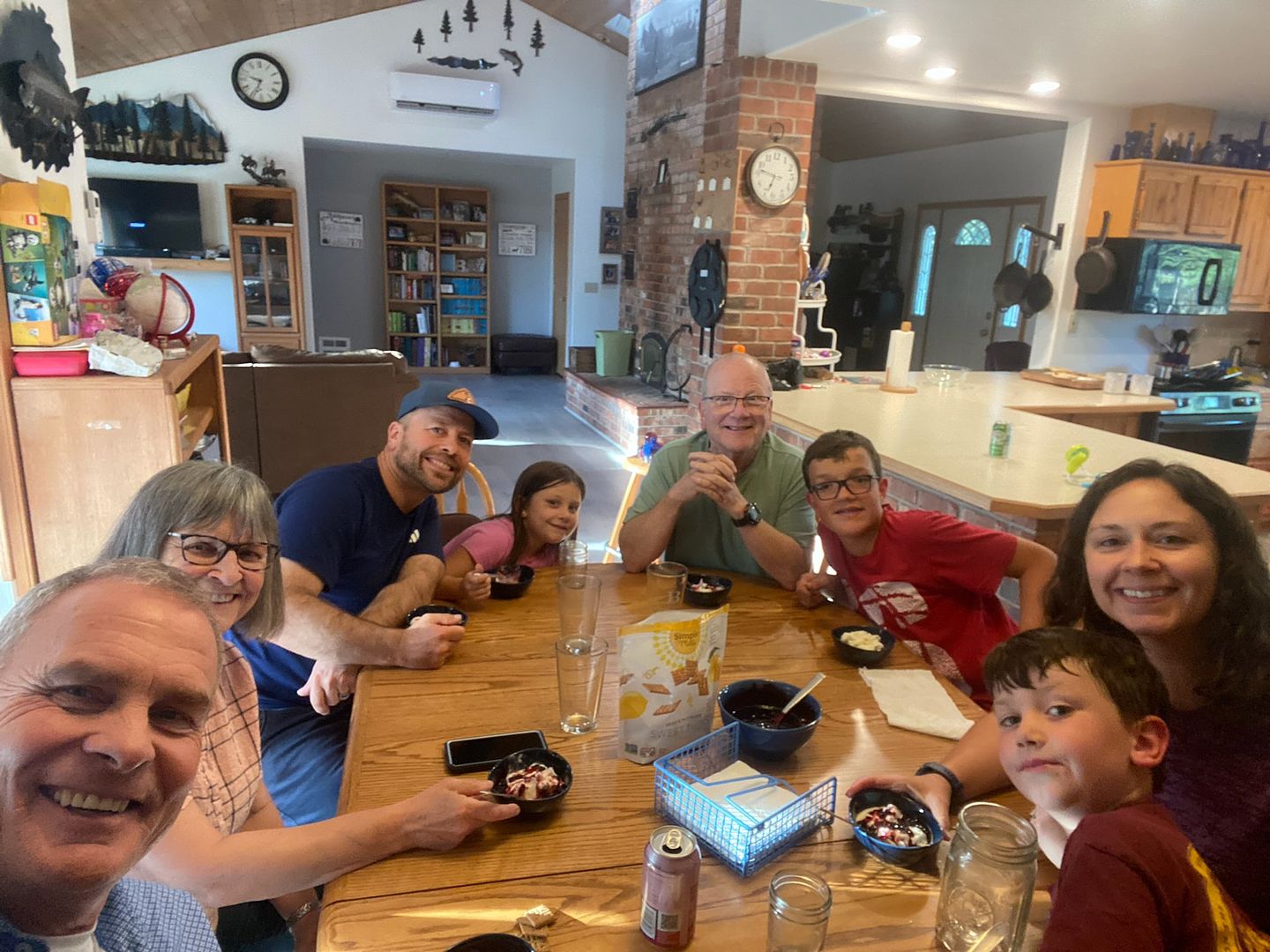 Sunday dinner was on Bayles Mountain. What a treat we had, lamb gyros with homemade gyros and tzatziki. Homemade Ice Cream with huckleberry sauce was our dessert. Our kids picked all the huckleberries themselves.