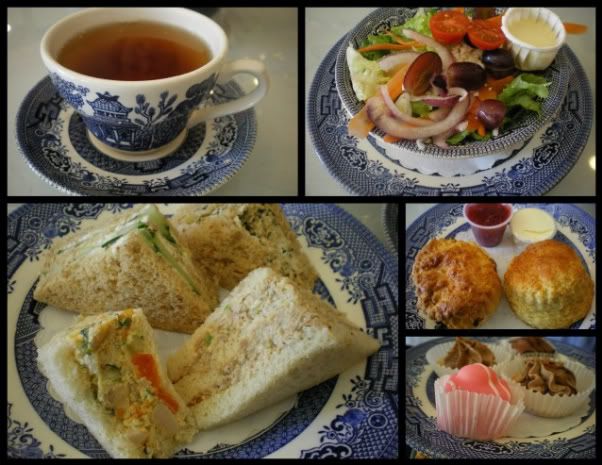 Second Course included Petite Spinach and Swiss Quiche, Smoked Salmon Mousse-Filled Cucumber Cups, and Lavender Cream Cheese Turkey Finger Sandwiches.