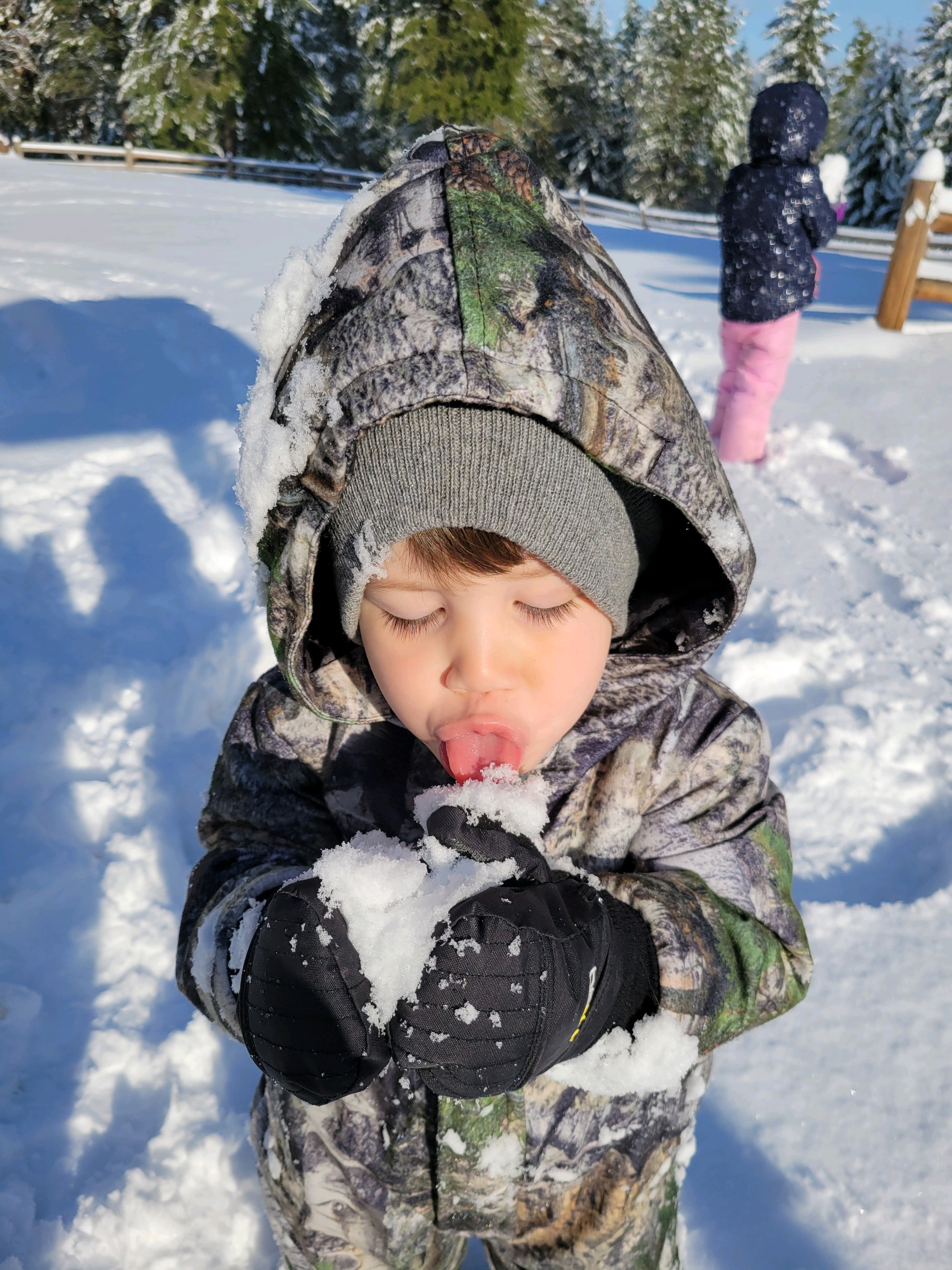 Snow is such a delight to our little grands. We received these photos via text.