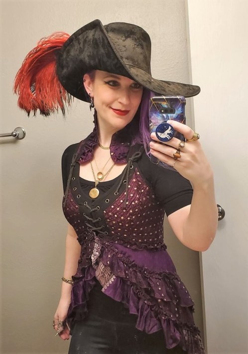 Our daughter, dressed up to hand out Halloween candy to trick or treaters.