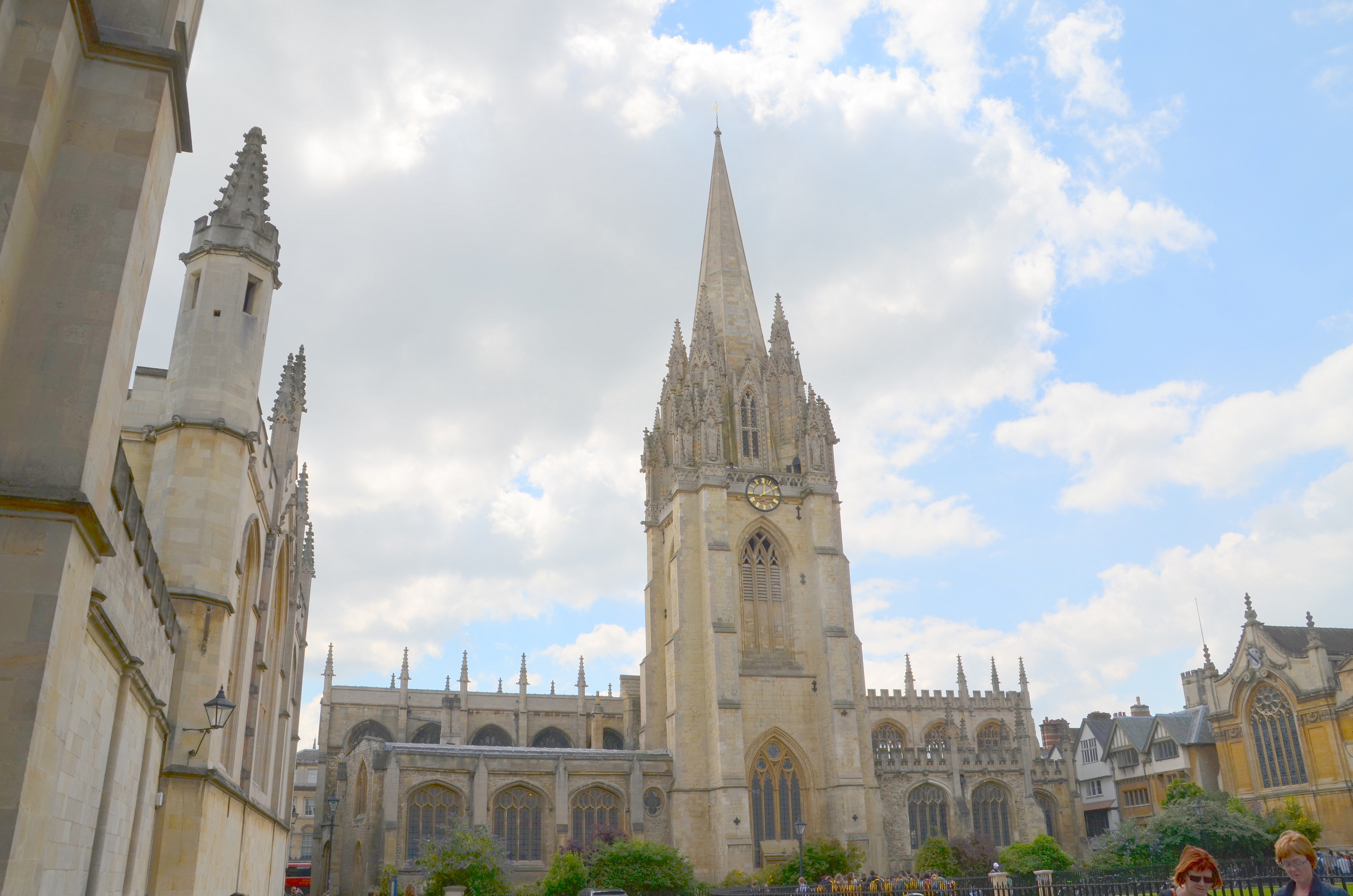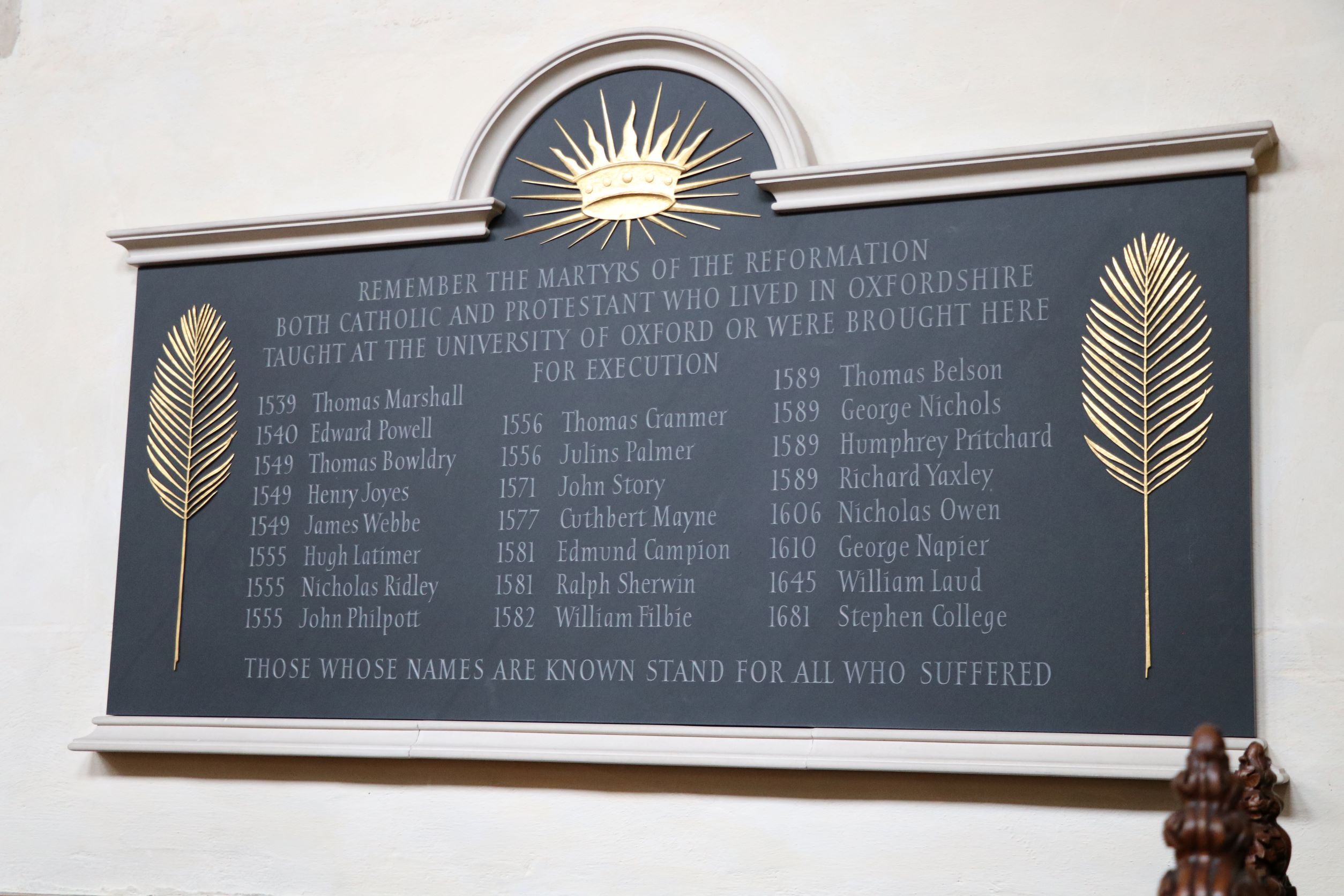 The Oxford Martyrs ~Each of the three anglican bishops, Latimer, Ridley and Cranmer, who were burnt at the stake in Oxford during the reign of the Roman Catholic queen, ‘Bloody Mary’, underwent part of his trial in St Mary’s. Their principal crime was not to believe the doctrine of transsubstantiation, although Cranmer, as Henry VIII’s Archbishop, had also played a crucial role in the downfall of Queen Mary’s mother, Catherine of Aragon.