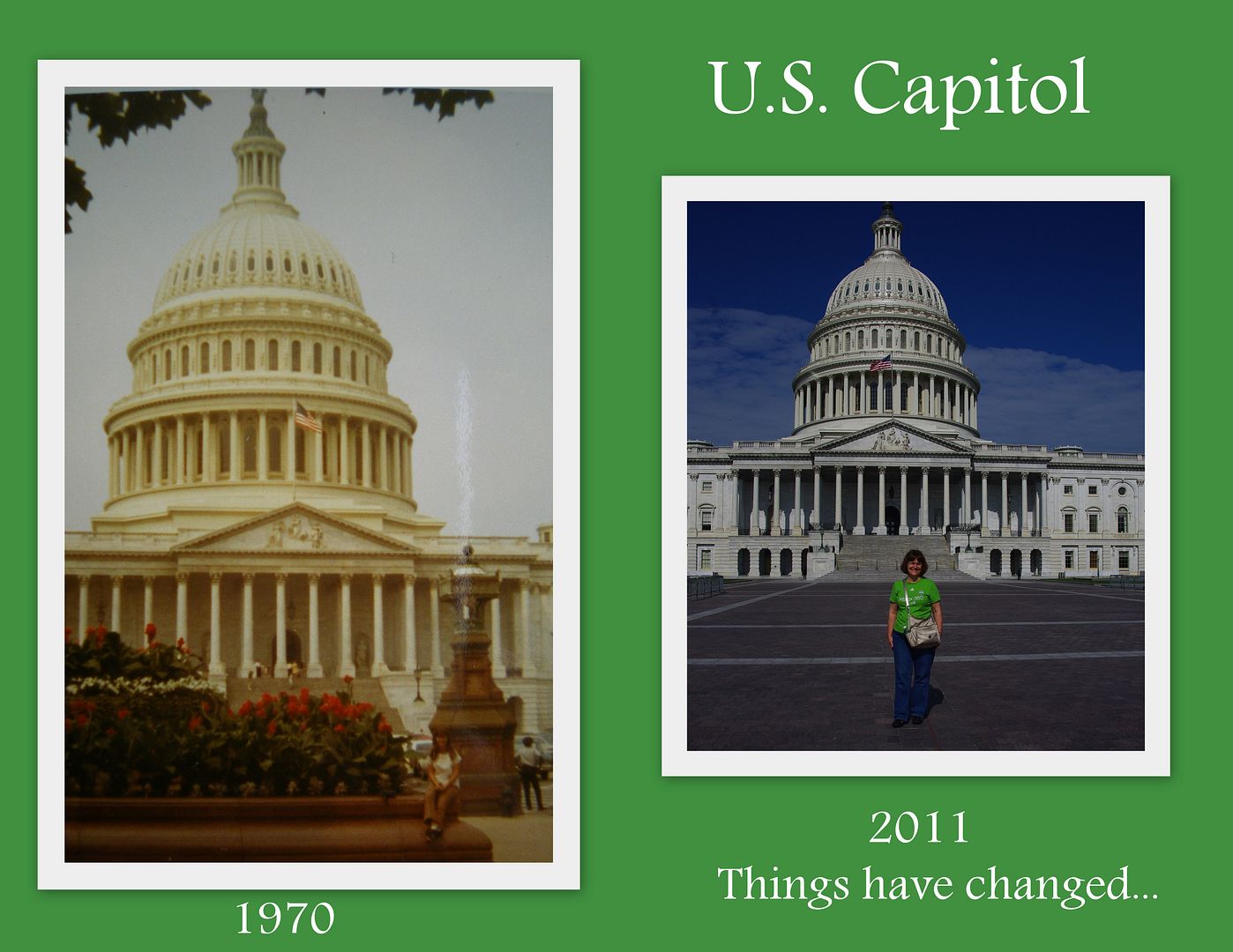 I have been to Washington D.C. twice in my life, once when I was in college and then in May of 2011. In the 70’s the average citizen could be trusted to get closer to the building. My best friend, Heidi, and me in the summer of 1971 in the photo above.