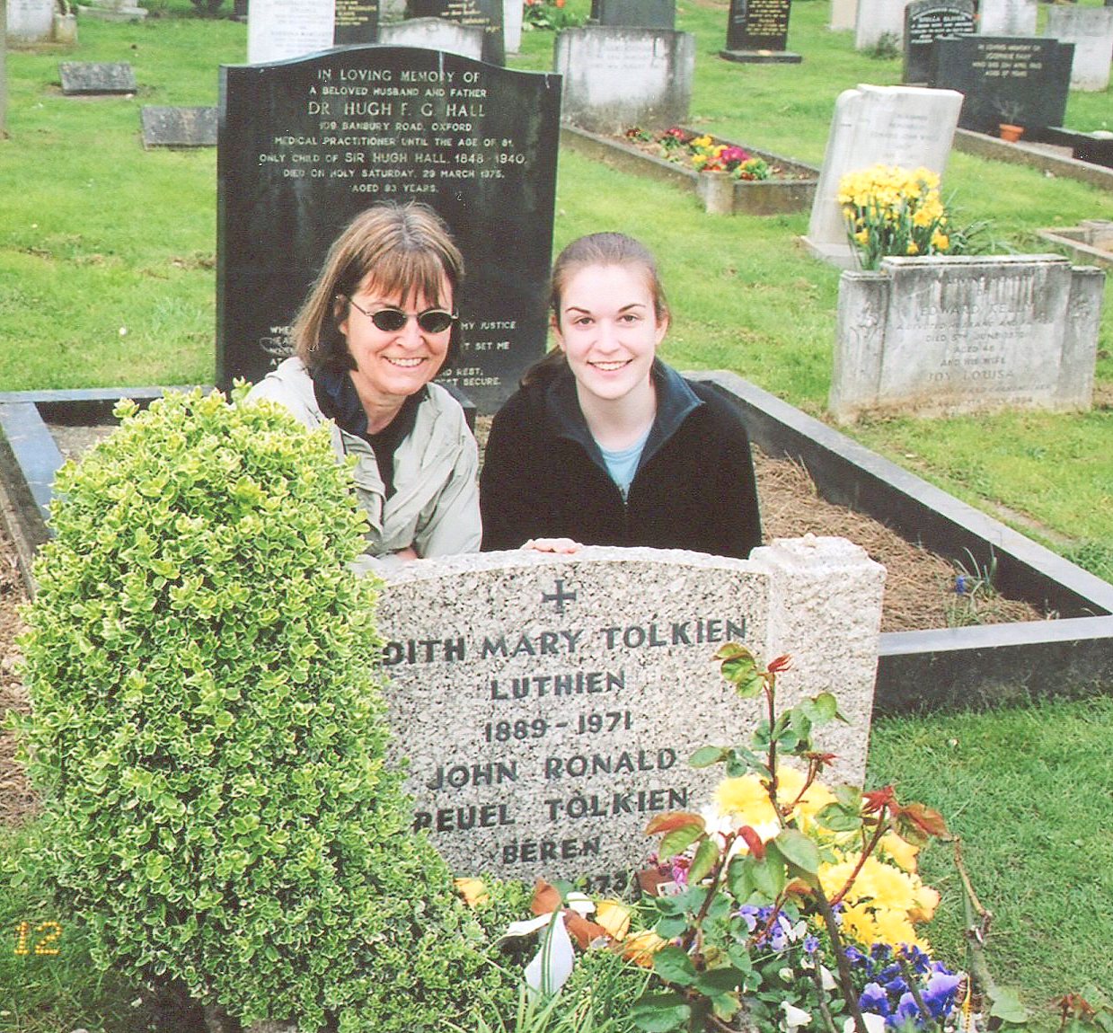 Katie would not let us leave Oxford till we found Tolkien’s grave. This was no small feat! Here we are at Wolvercote Cemetery in North Oxford at the graveside where he and his wife are buried. His son is buried here, also. Katie left a note in Elvish, (yes, she learned to write and speak Tolkien’s Elvish).