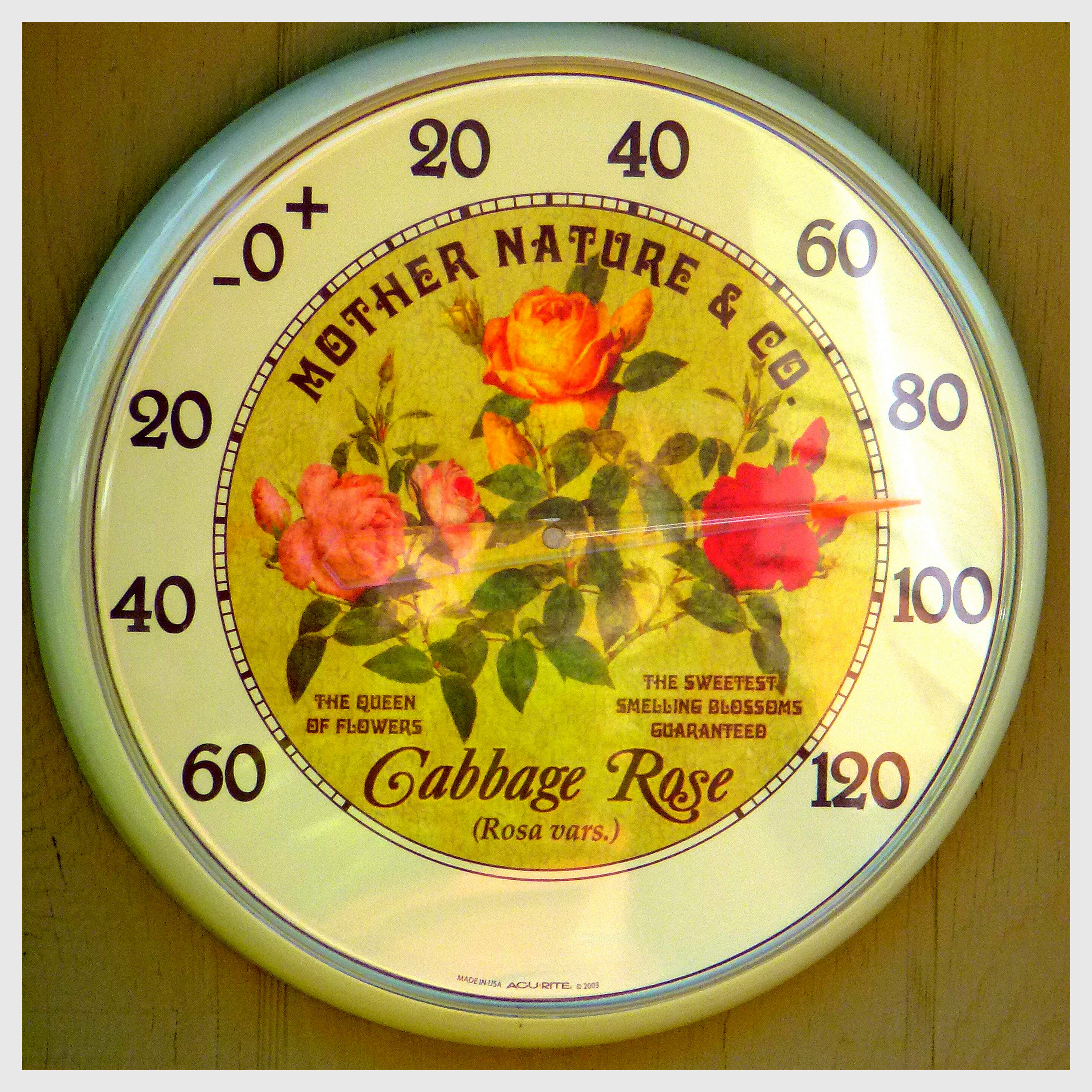 Our thermometer showing a very hot day for us here in the Pacific Northwest