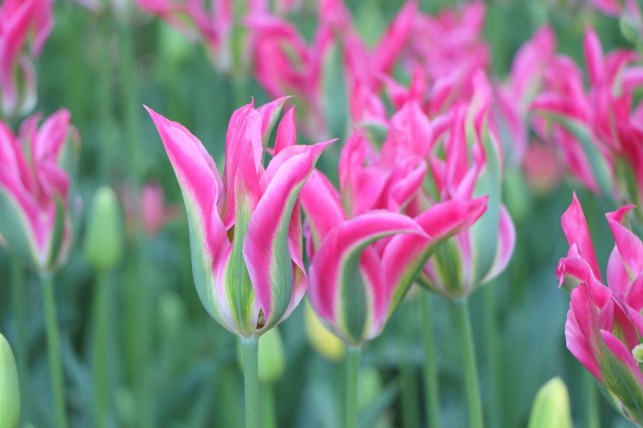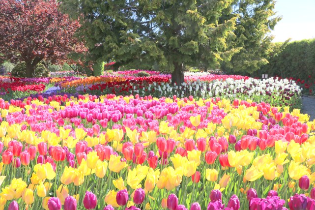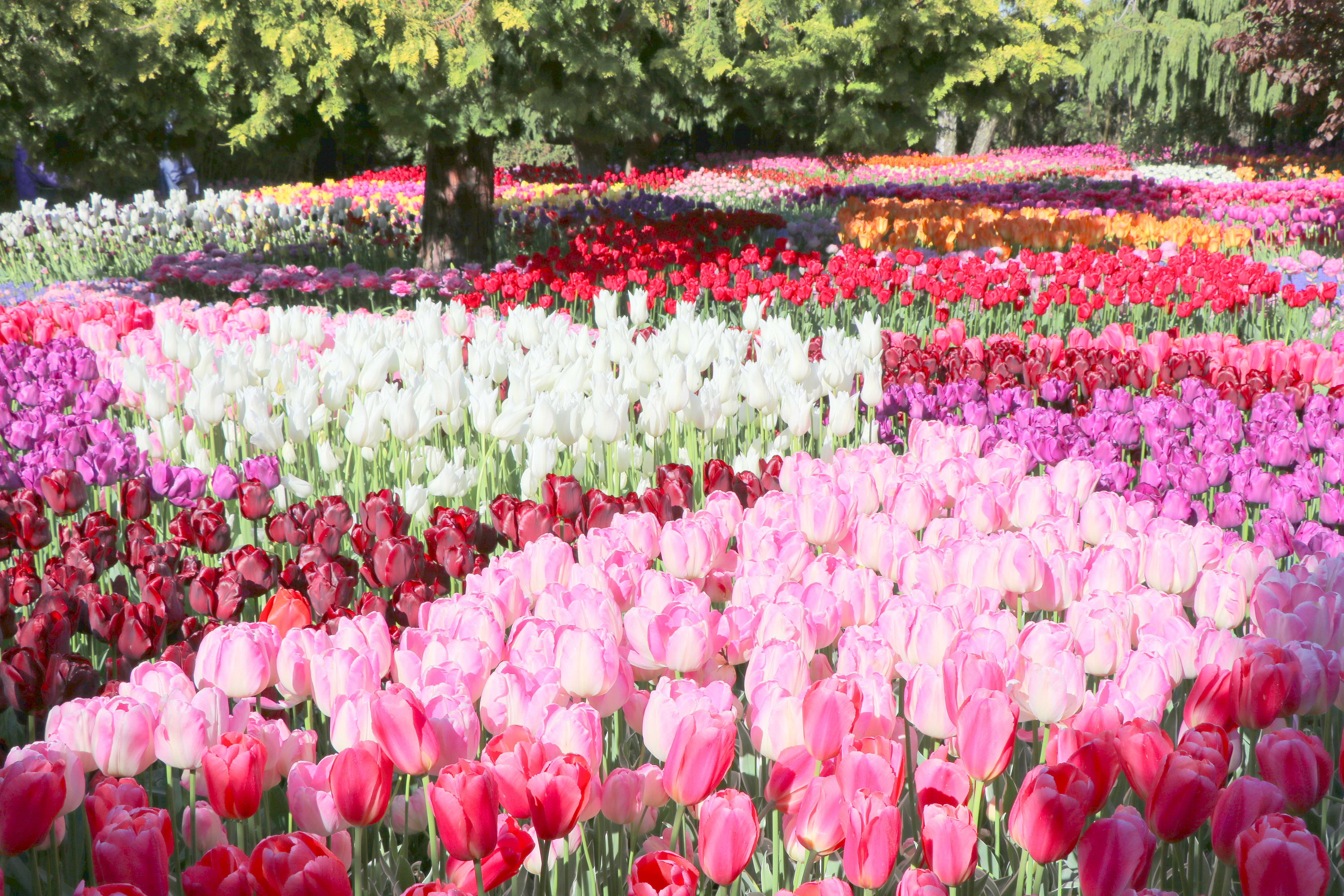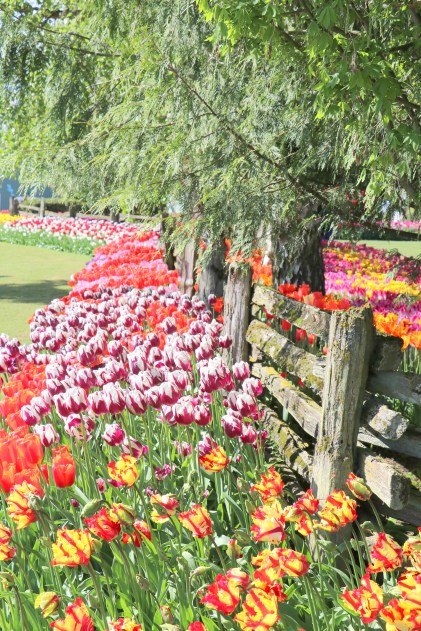 We were happy that we had a nice window of sunshine on May 2nd to enjoy this years tulip display even though it was in it’s very last days. The tulip festival usually runs the month of April. This year there was a late start to the blooms because of our winter weather so they extended the festival through the first week of May. So much beauty in living color.