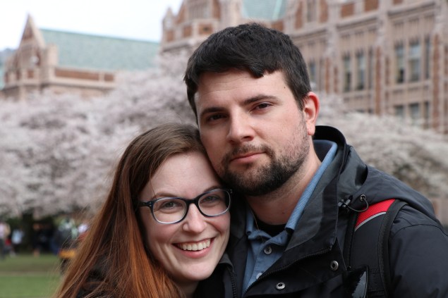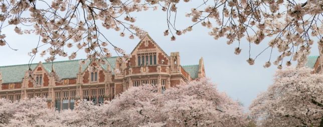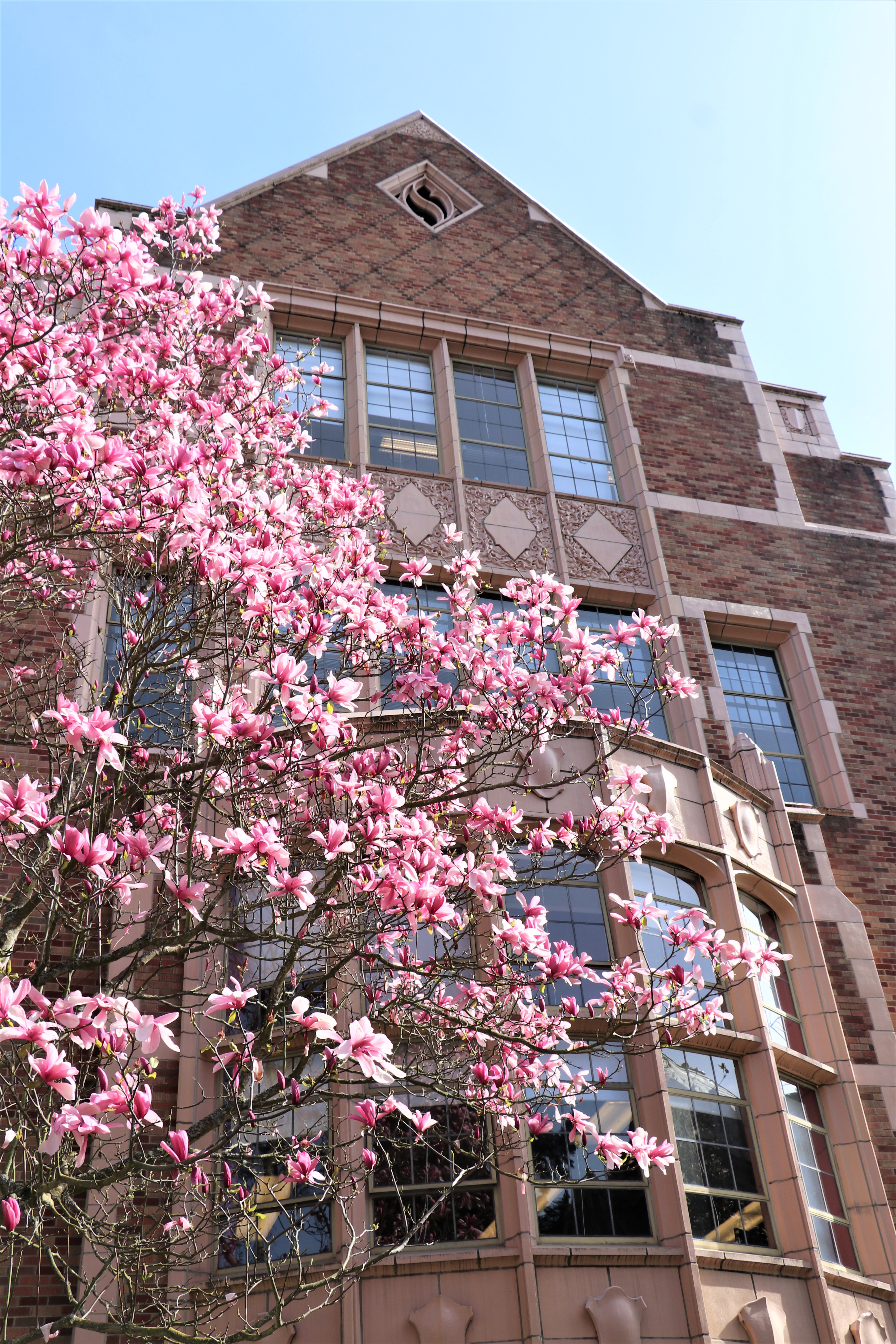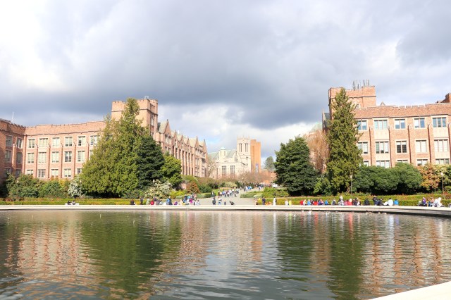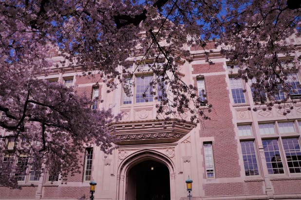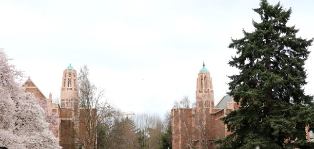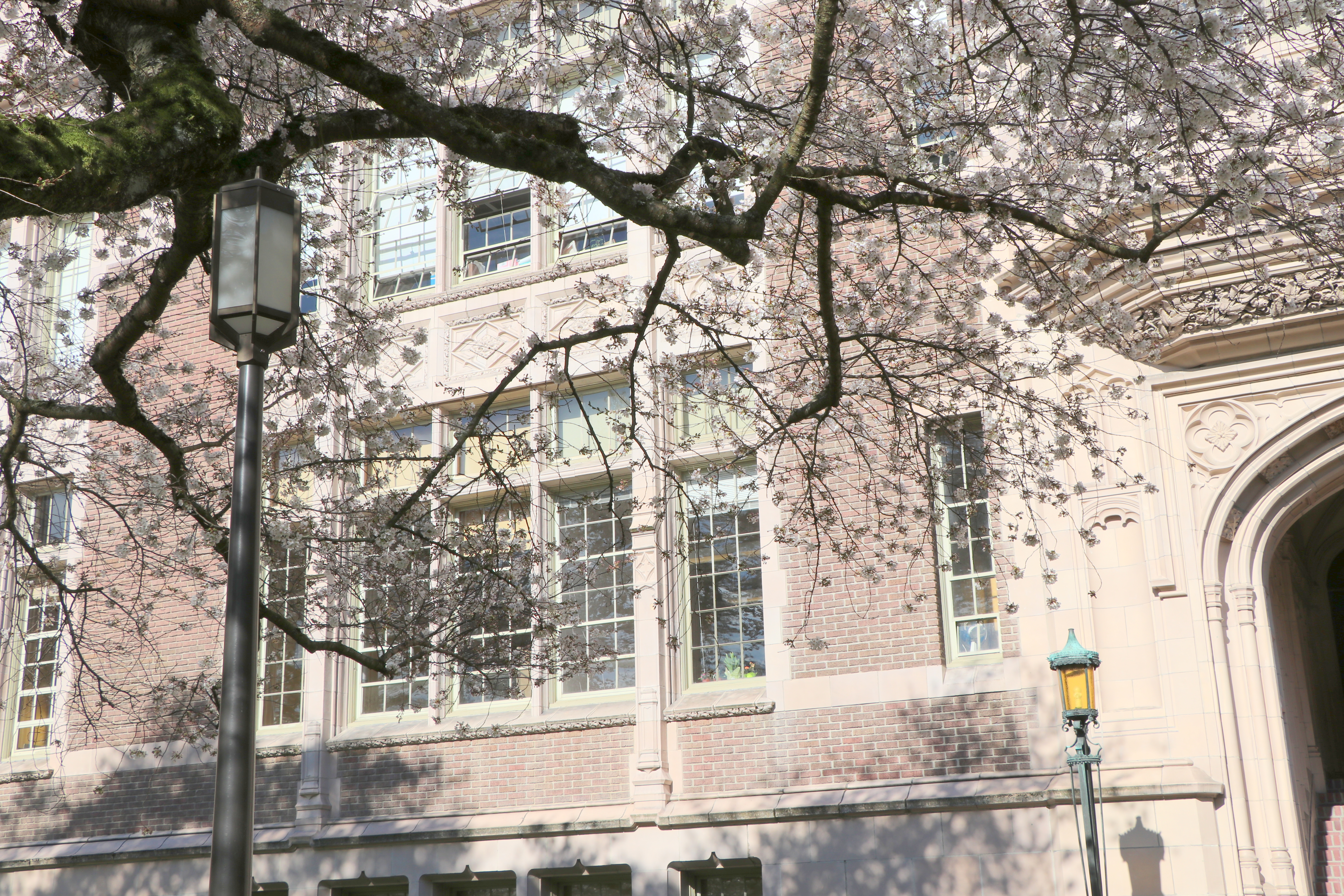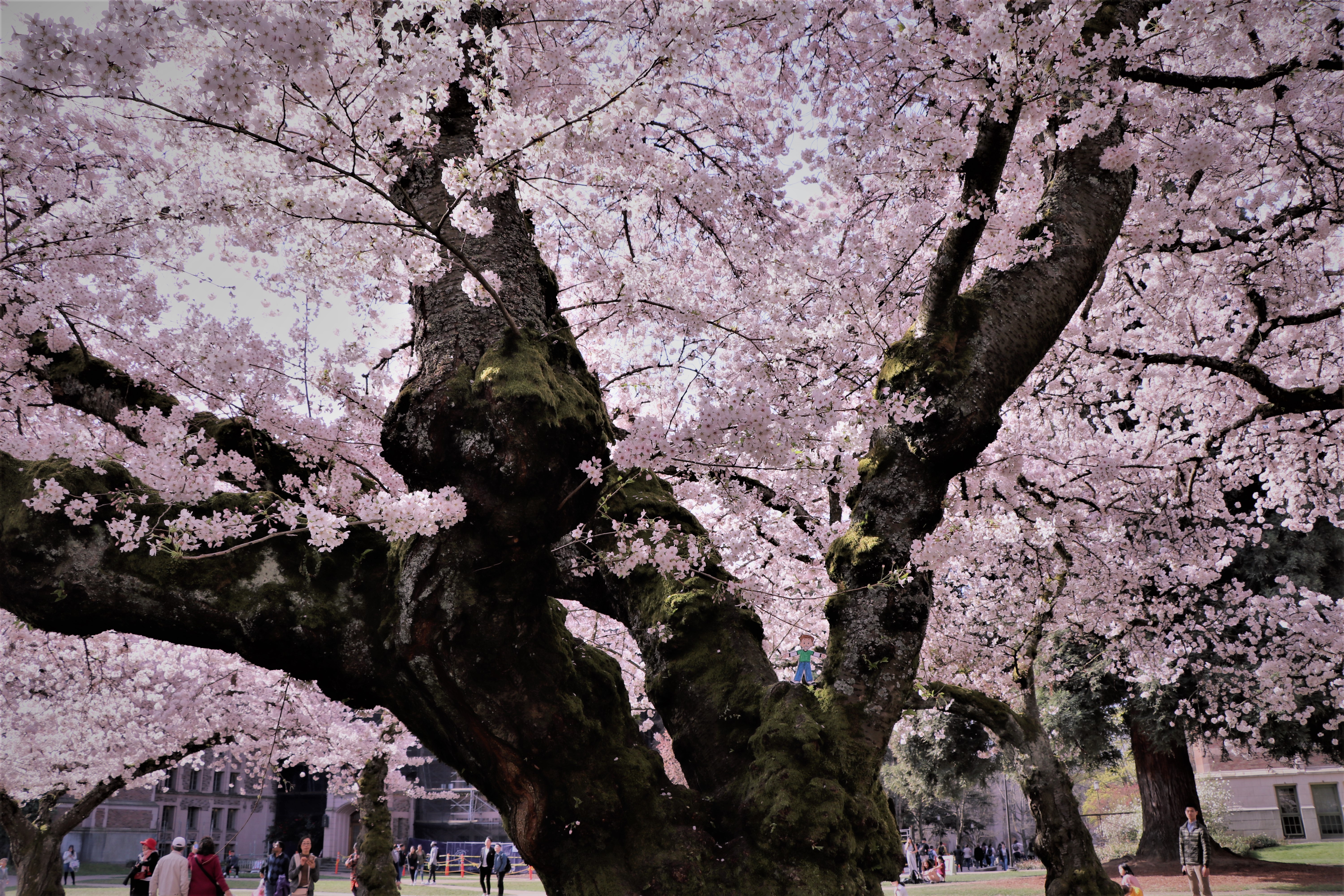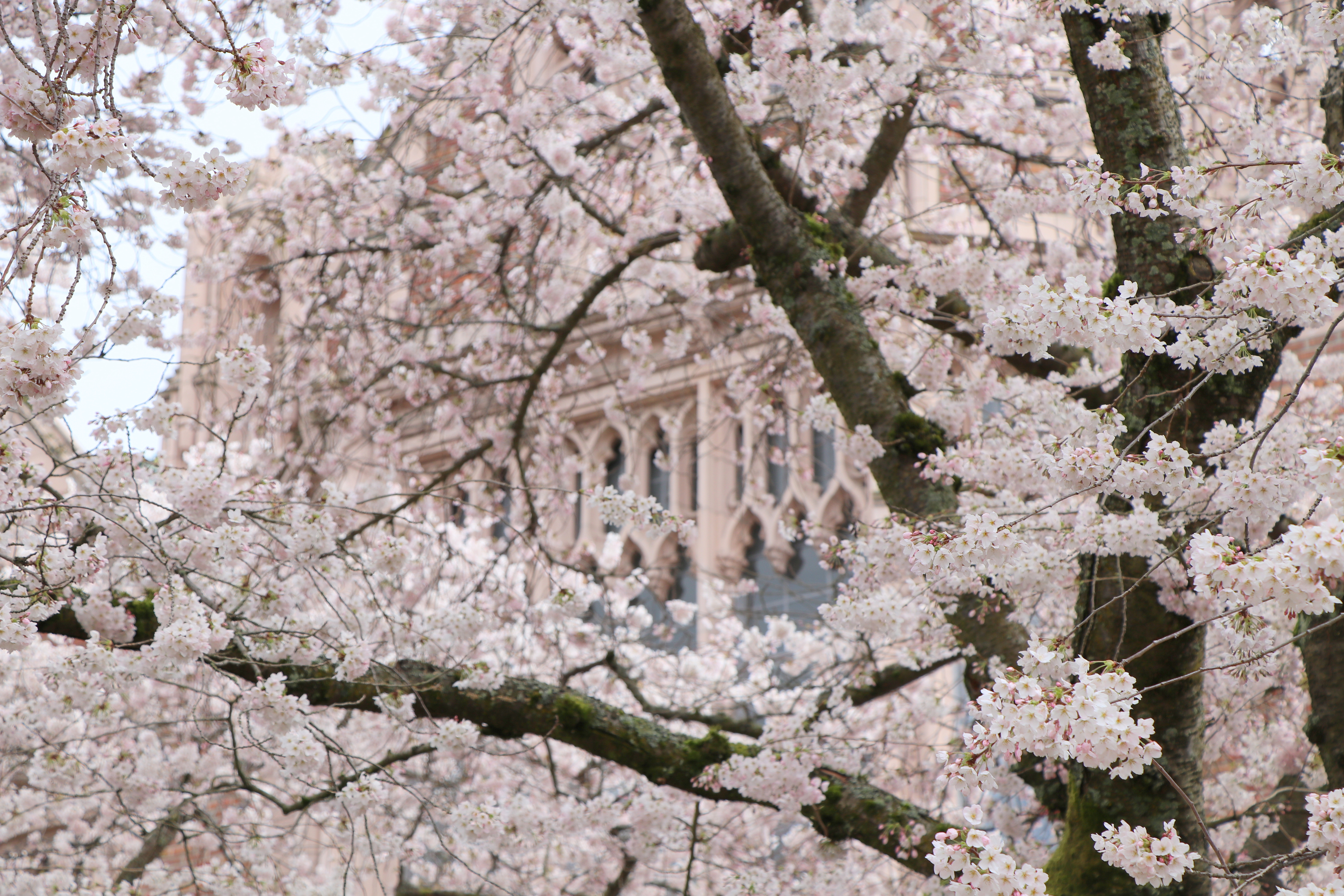 When we were done with the blossoms and headed back to the parking garage, Rainier was hiding but all the students were out in full force! I took a couple more photos on the way to the parking garage.