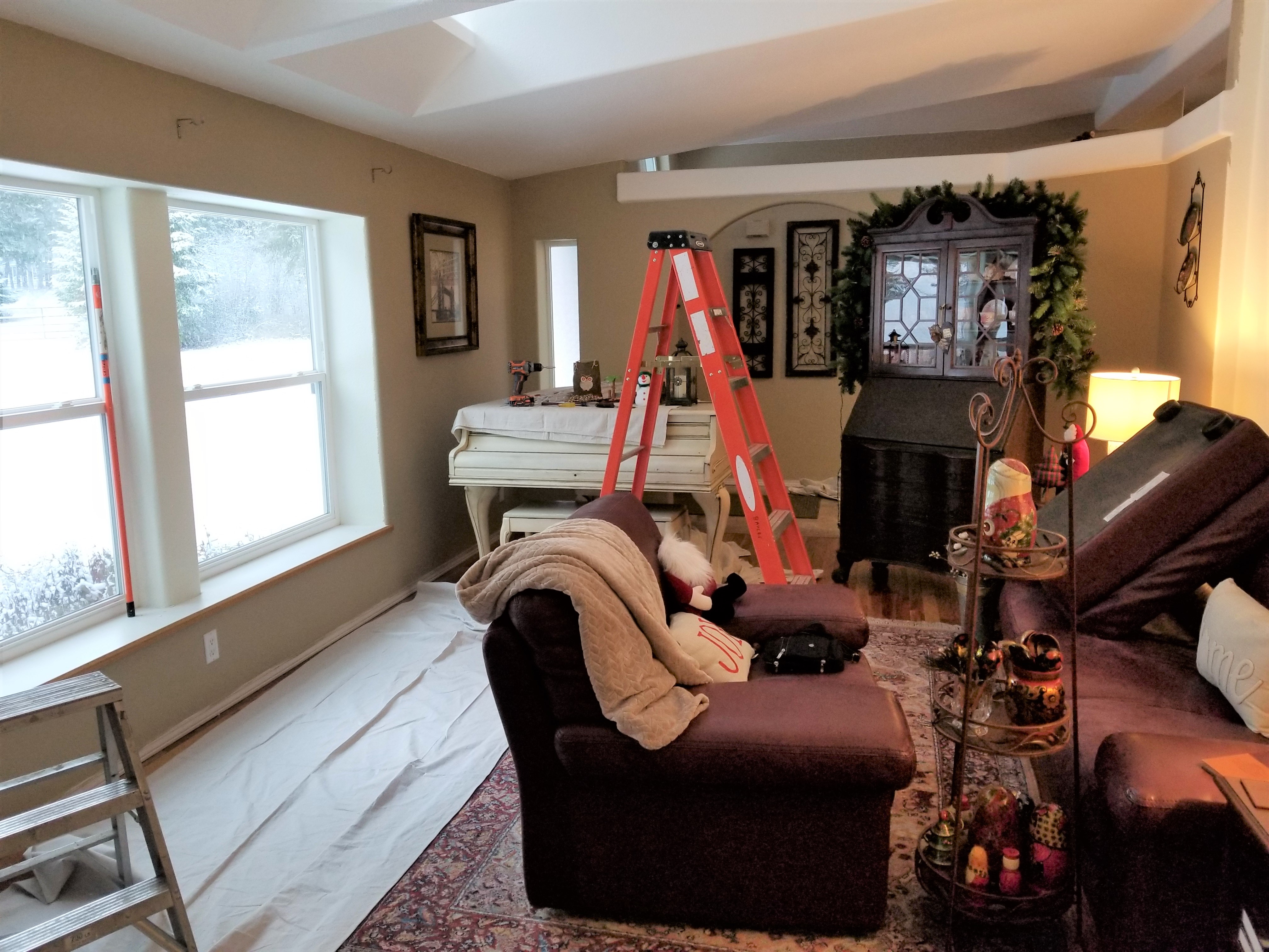 What’s stressful about painting all your interior walls in the month of December? Don’t you love how the Christmas décor intersect with the painting equipment?