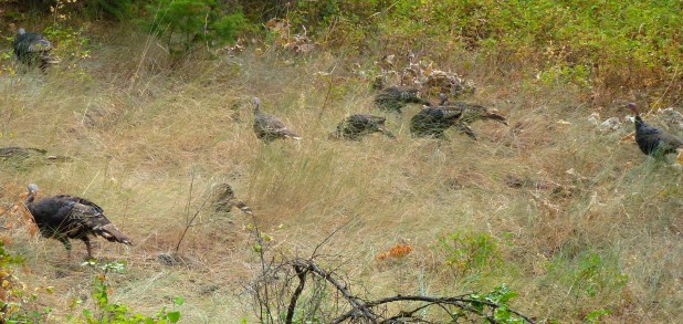 Colville lays claim to that title. All of these turkeys were on our son’s property last weekend and we’ve seen many a rafter of turkeys on the roads we travel around Colville and Chewelah.