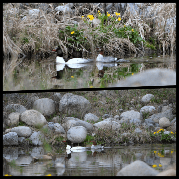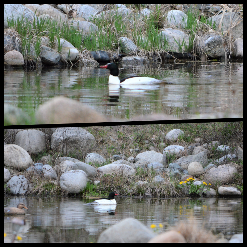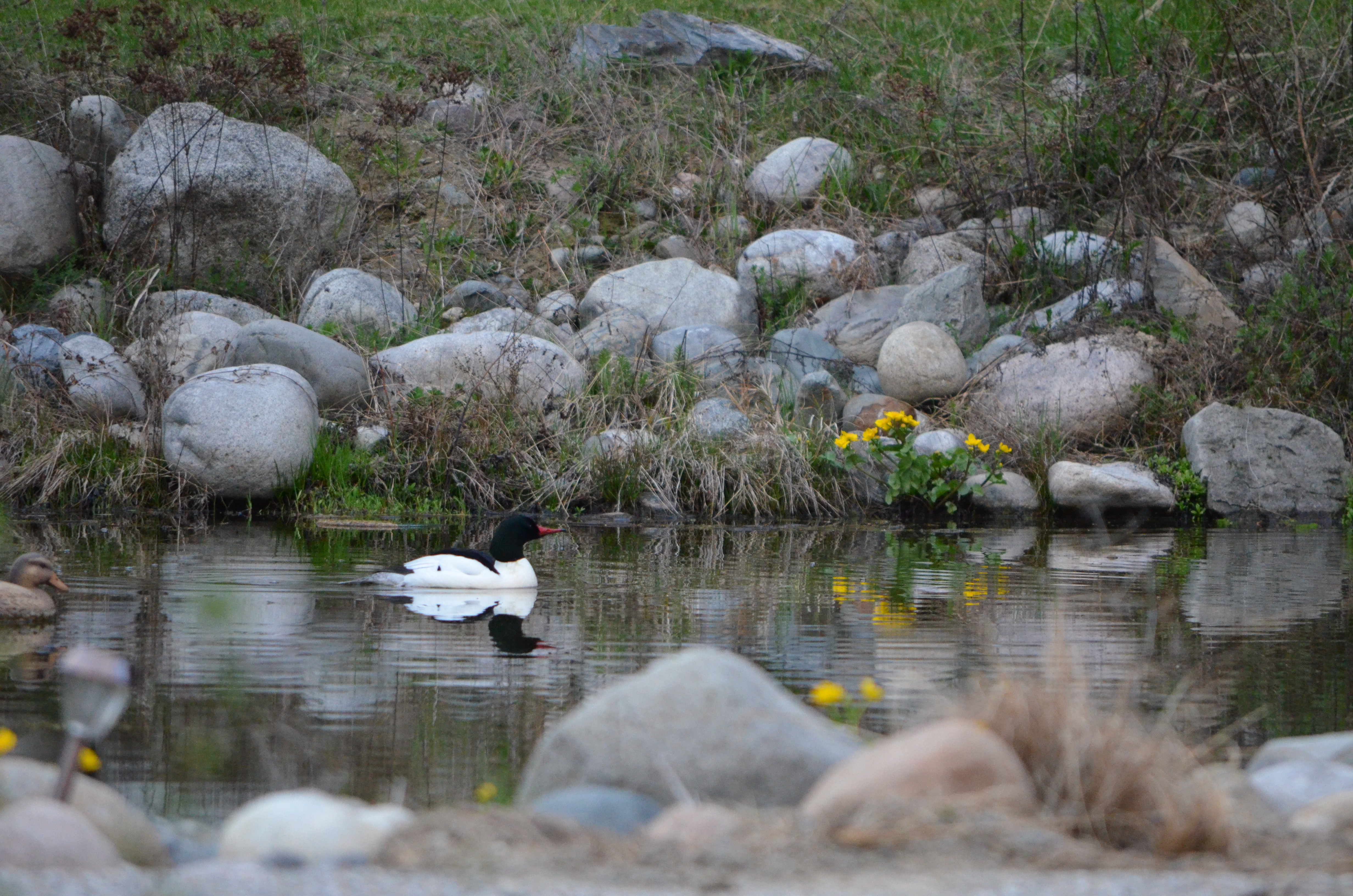 In April, before we drained our pond, we had 3 real ducks land in it. I had to look up their name on google images. They are Common Mergansers.