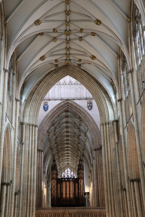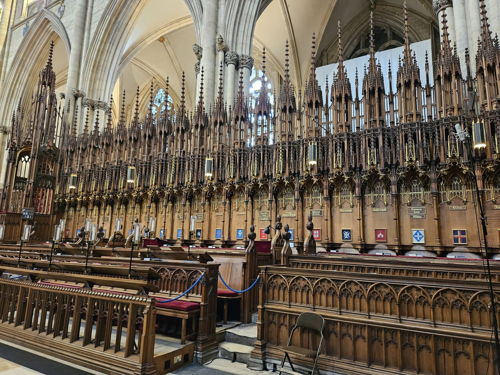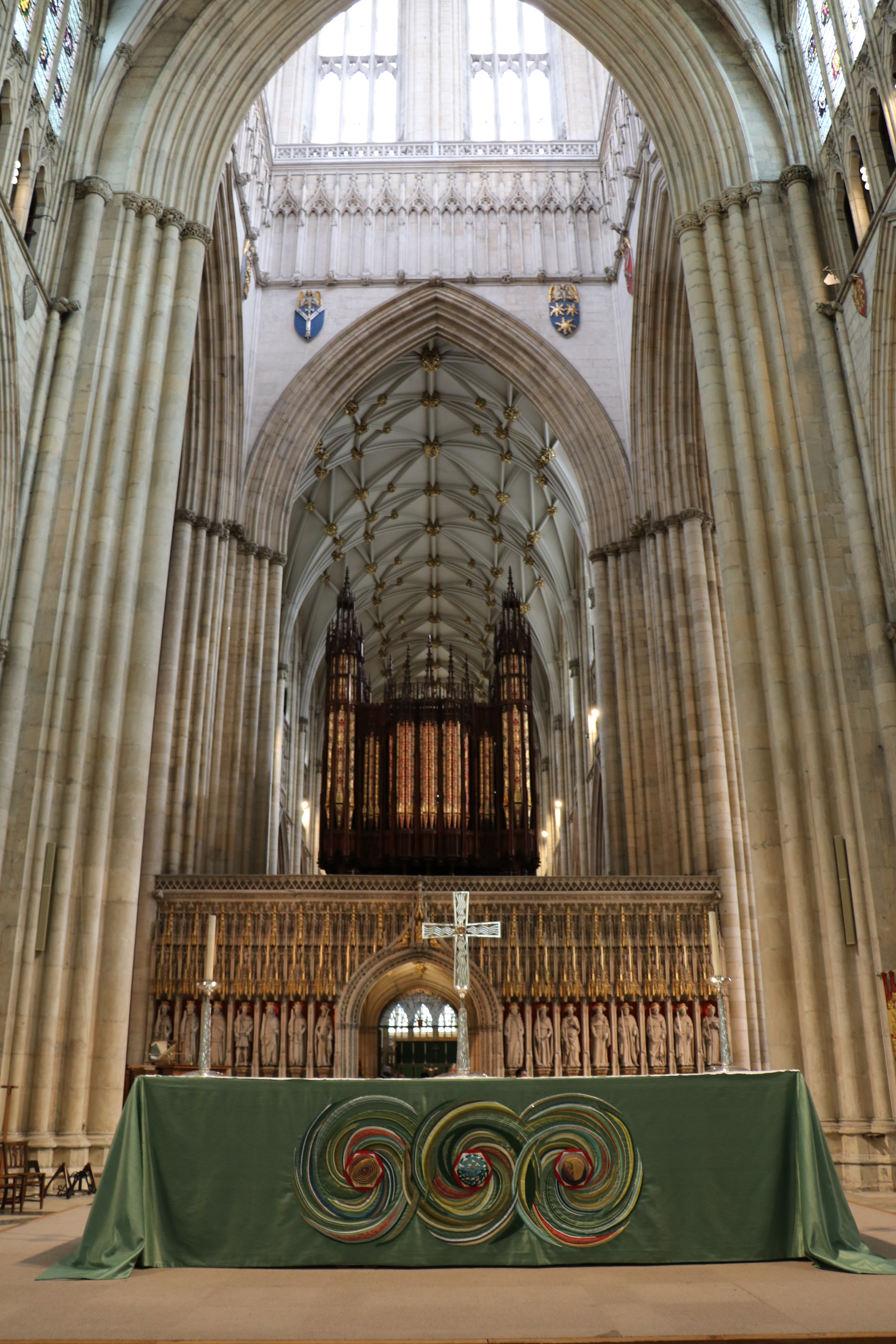 The Quire (Choir) of York Minster is a delight to the eye. The Quire Screen is one of the most intricately carved in all the UK, with depictions of famous churchmen set within niches facing the nave. Before passing through the Screen, look up, where the huge organ is poised above the screen. Recently refurbished, it boasts an astonishing 5,300 individual pipes.